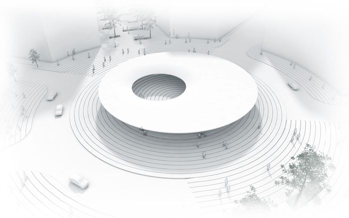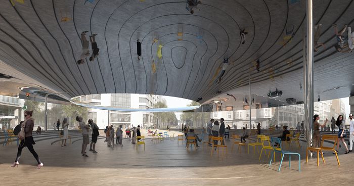 La philosophie globale du projet repose sur le concept de centralité et s'inspire de la forme de l'hémicycle du Parlement européen, symbole par excellence de la démocratie. Des cercles concentriques vont en s'amplifiant sur toute l'étendue de la zone du projet. Au centre du nouvel espace, un lieu de rencontre est créé en modelant le terrain en forme de cuvette, surplombée par un auvent destiné à abriter les passants. La structure métallique du plafond de l’auvent est pensée pour refléter le rond-point et les personnes qui l’empruntent et pour créer un lieu de rendez-vous entre les nationalités, les cultures, les langues et les genres. Autour de l'agora centrale, une grande zone piétonne est aménagée, allant du parc du Cinquantenaire jusqu'au pont Loi. La rue de la loi deviendrait piétonne entre le parc et Schuman. L'ensemble de l'espace sera verdurisé.