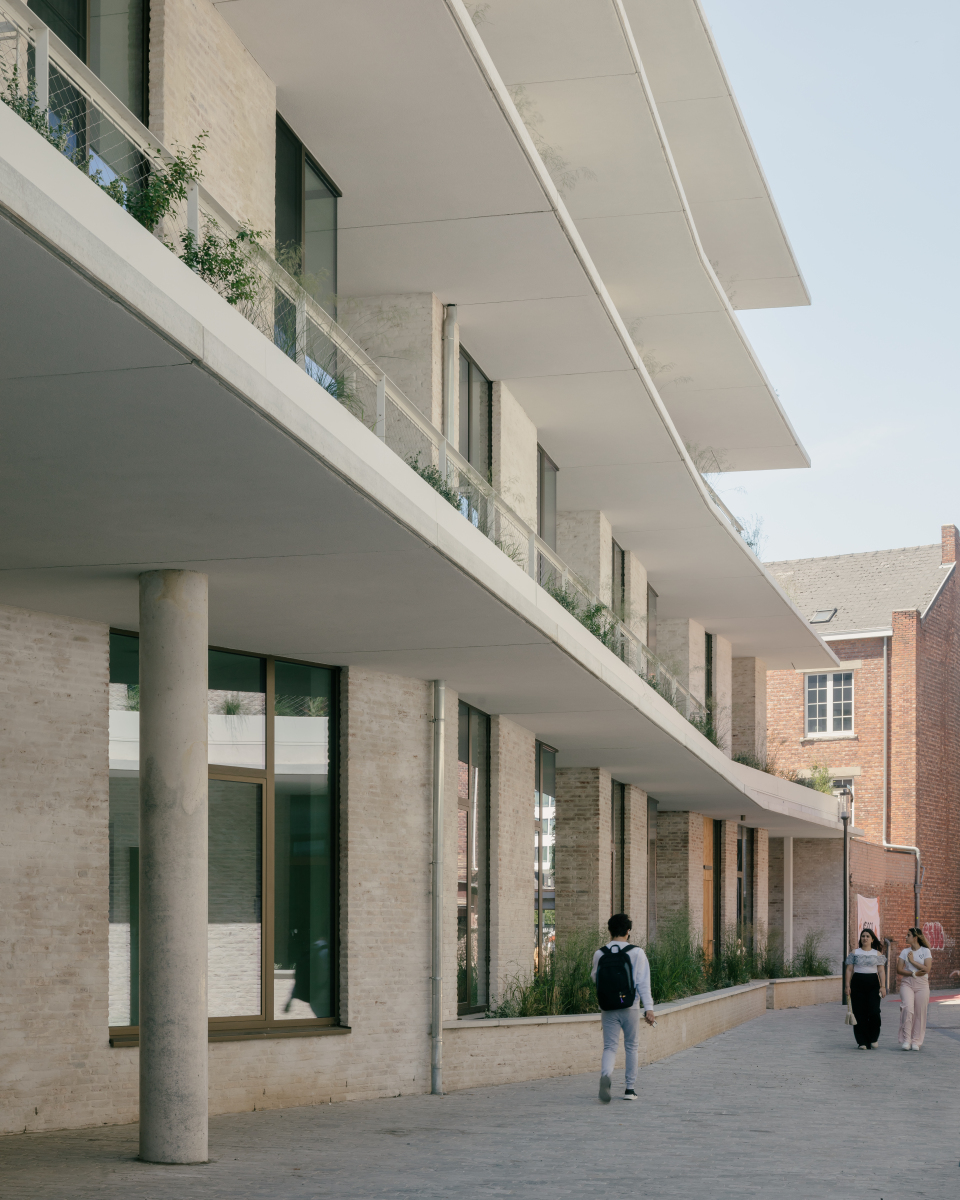 Le site Bonnefant est situé dans la zone de transition entre le centre commercial et le centre culturel de la ville de Hasselt. A2o architects a décidé de conserver le bâtiment existant caractéristique, de le compléter en bloc et de le compléter par des logements. Entre ce volume et celui du bâtiment qui le recouvre, l'équipe a créé une zone de promenade sûre et verdoyante, qui accroît la finesse du centre-ville. Dans le cadre du projet, de multiples fonctions ont été rassemblées et organisées le long d'espaces ouverts accessibles, permettant à ces espaces d'accueillir également la biodiversité de Hasselt.
