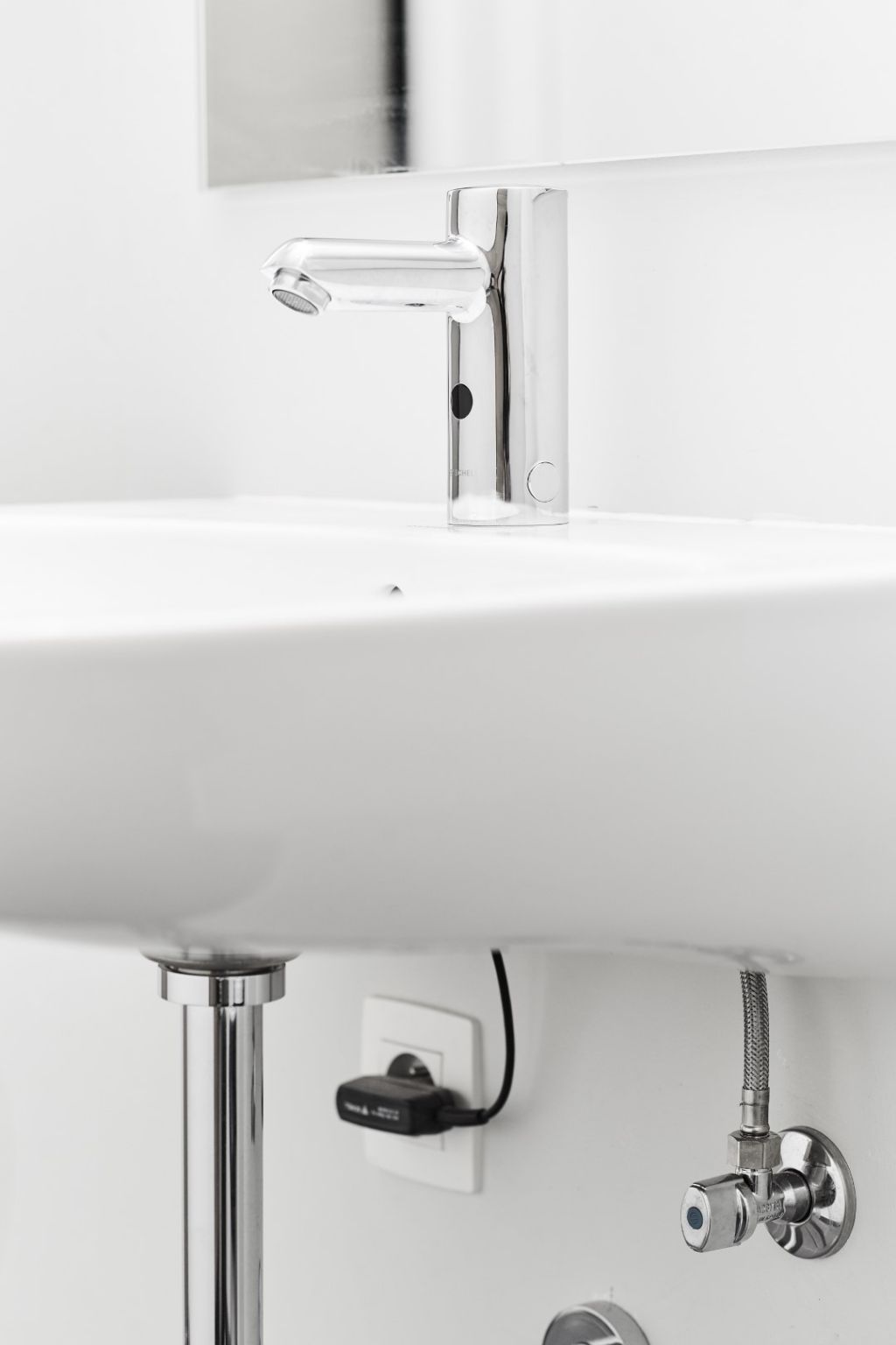 Tant pour les robinets d’éviers que pour les robinets de chasse d’urinoir, le choix s’est porté sur des robinets électroniques mains libres. Les utilisateurs n’ont pas à toucher l’appareil pour faire couler l’eau. Avec les lavabos, il suffit de garder les mains devant un capteur infrarouge installé dans le robinet pour que l'eau coule automatiquement. L'écoulement cesse immédiatement lorsque les mains sont rétractées. « La consommation d’eau lors de l’utilisation de ce robinet infrarouge est considérablement réduite. On ne déplore plus de gaspillage dû à une mauvaise fermeture du robinet après utilisation. Comparé à la consommation de robinets de lavabo à levier, des robinets à commande électronique permettent d’économiser jusqu’à 60% d’eau pour un lavage manuel normal », déclare Pollentier.
