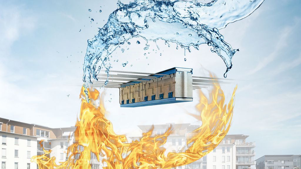Les fonctions physiques du bâtiment et la sécurité incendie des produits Schöck Isokorb® sont garanties par plusieurs de leurs composants. Les faces supérieure et inférieure des éléments Schöck Isokorb® sont recouvertes de panneaux ignifuges durables.