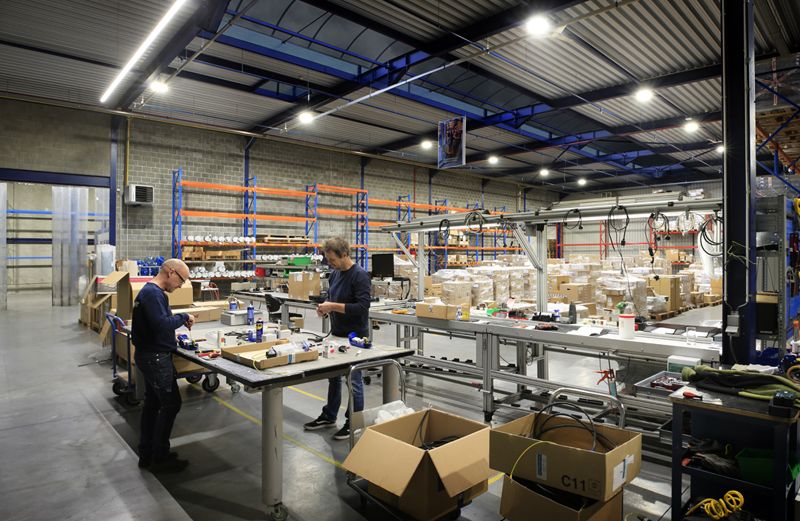Schréder BE a décidé de remplacer l’éclairage des halls par des luminaires de sa gamme industrie associés à un système de gestion. 26 INDU BAY Gen3 remplacent les anciens luminaires 400W et procurent un niveau d’éclairage de 500 lux. Dans la zone où un travail de grande précision est réalisé, 8 INDU CONTILINE assurent un niveau de 1.000 lux, le tout avec une uniformité remarquable. De plus, ces luminaires se caractérisent, par un indice de rendu des couleurs élevé (IRC 80) et un faible coefficient d’éblouissement (UGR <22). L’ensemble de ces facteurs assurent une excellente visibilité aux travailleurs, réduisant ainsi le risque d’erreurs et diminuant le risque d’accident.