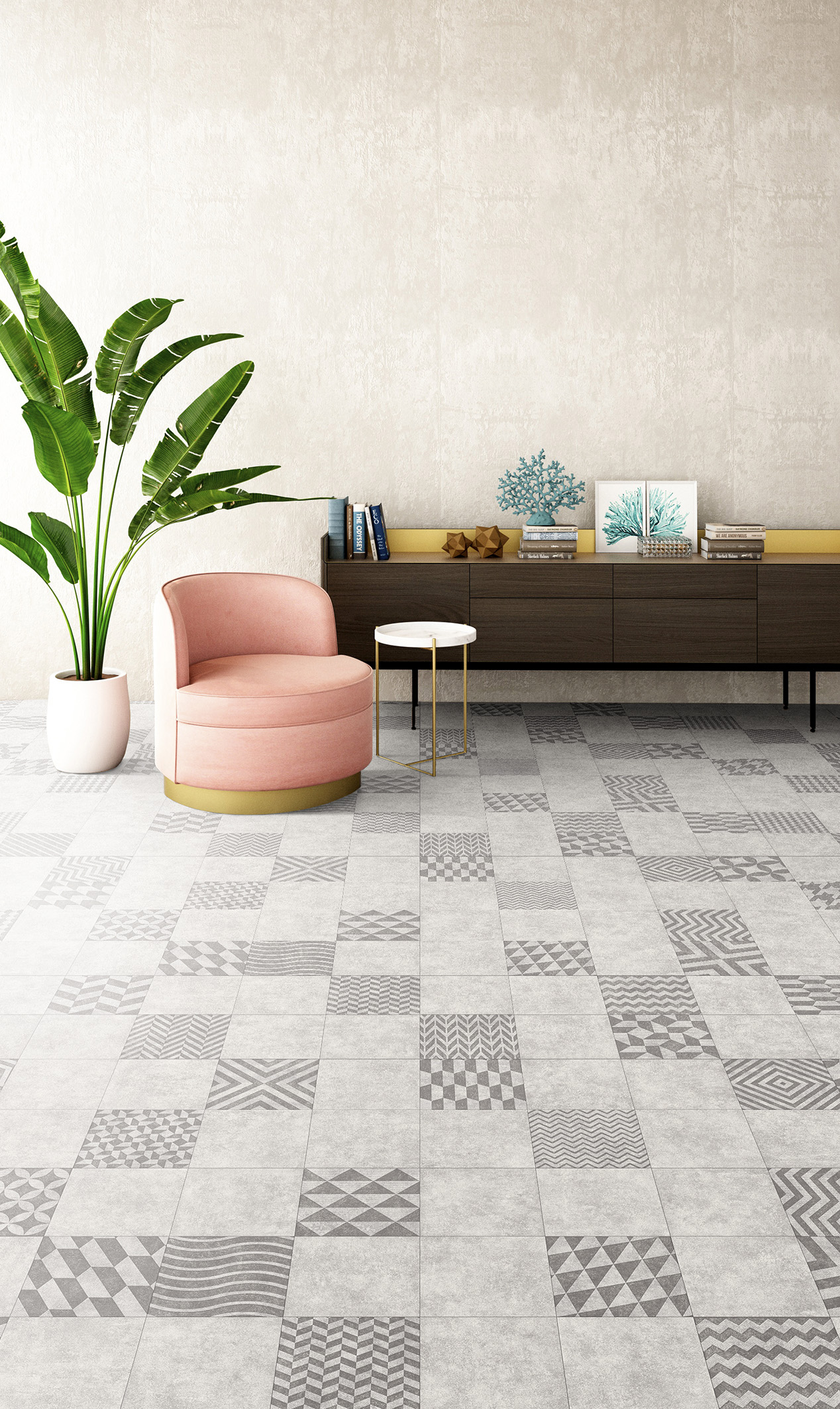 Mais ils ont aussi d'autres avantages : les revêtements de sols acoustiques d'IVC existent également dans de nombreux et superbes designs. Que vous choisissiez des dalles de moquette, du LVT ou du vinyle hétérogène, vous trouverez la couleur et le motif adaptés à une rénovation dans la gamme d'IVC. Des dalles de moquette colorées pour un espace de bureau aux élégantes planches en LVT avec un motif en bois pour un immeuble d'appartements.