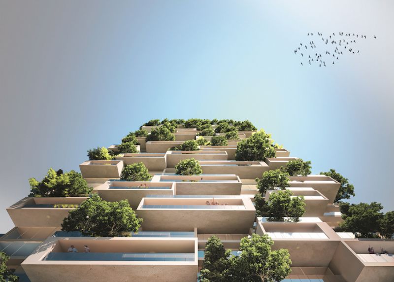 Tout comme pour les édifices Bosco Verticale imaginés par Boeri à Milan, l'intention est que le feuillage des arbres capture les particules fines et le CO2 tout en produisant de l'oxygène pour améliorer la qualité de l'air de la ville.