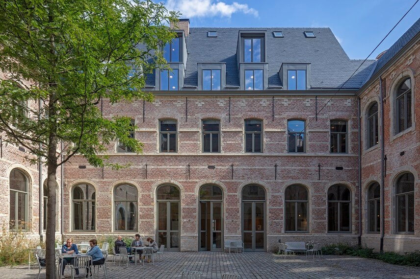 Lancé en 2011 par le maître-architecte de la région Flandre, le concours visant à réhabiliter l’ancien monastère baroque de Malines – érigé au XVIIe siècle puis par la suite transformé en hôpital et en caserne – a été remporté par de Korteknie Stuhlmacher Architecten (KSA), un cabinet d’architecture néerlandais auquel ont été associés Bureau Bouwtechniek et Callebaut Architecten.