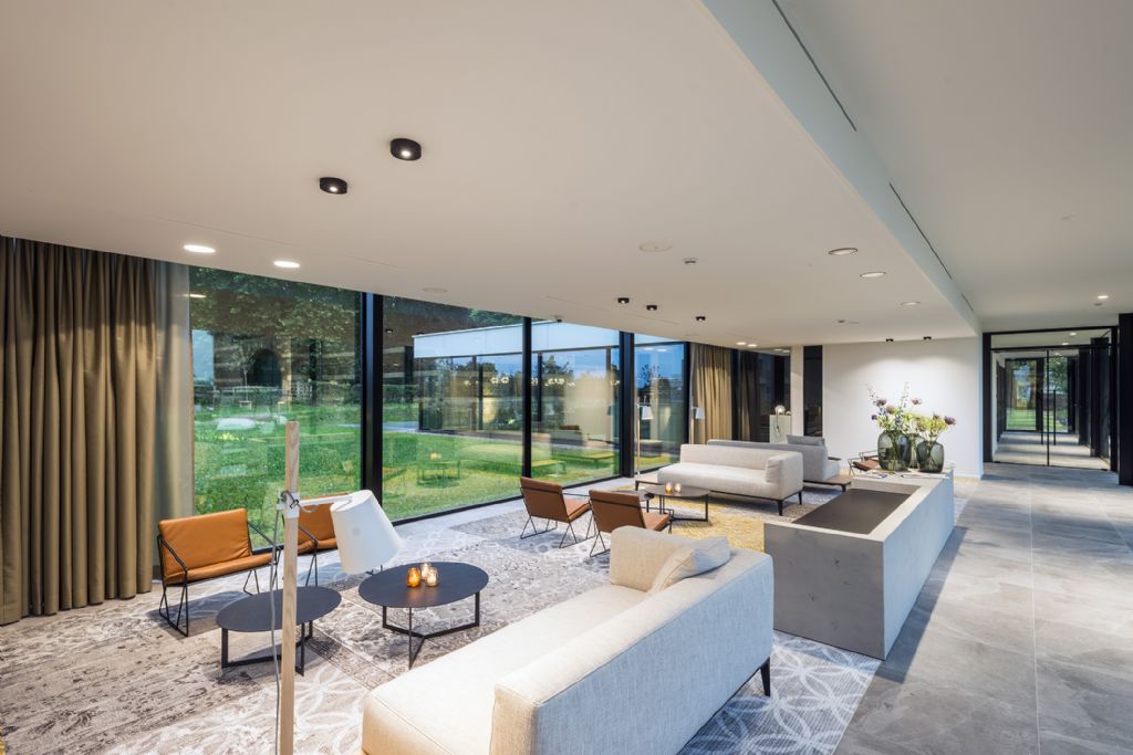 La piscine et son espace bien-être donnent sur la terrasse extérieure enterrée. « Dès le stade de l’appel d’offres, les architectes avaient déjà une idée très précise de l’apparence finale de l’hôtel », explique Jeroen Mathijs, chef de chantier chez Building Group Jansen de Meeuwen-Gruitrode, l’entreprise qui a assuré les travaux de finition du complexe. « En témoignent les matériaux de première qualité qui ont été exigés pour la construction, comme les plaques Aquapanel Cement Board Indoor de Knauf pour l’espace bien-être. Elles présentent une haute résistance à l’eau et l’humidité. L’idéal pour un espace avec piscine, sauna et hammam. On retrouve ici aussi les profilés C5 anticorrosion de Knauf, résistants au chlore. Le plafond a, quant à lui, nécessité plusieurs couches de finition pour présenter une surface uniforme. » Atteindre un tel niveau supérieur de finitions fut un jeu d’enfant pour les opérateurs de Building Group Jansen. Le résultat vaut vraiment le détour.
