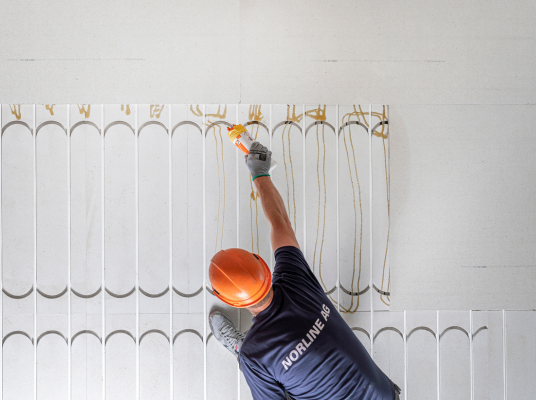 James Hardie a conçu les éléments de chauffage au sol Fermacell® Therm25™ comme une chape sèche avec des guides de tuyaux intégrés pour le chauffage et le refroidissement au sol intérieur. Ce système de chauffage au sol est composé d'éléments de sol en fibre de gypse pré-rainurés, ce qui élimine le besoin de rainurage manuel. Pratique dans sa conception et rapide à installer, il est idéal pour les projets de rénovation avec des planchers en bois et une faible hauteur d'installation, mais aussi parfait pour les nouvelles constructions.