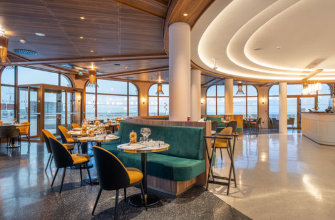 Après une longue promenade sur la plage, le restaurant exclusif L'OPALE vous invite à profiter de la vue tout en dégustant un menu haut de gamme. Une combinaison de portes battantes et de portes coulissantes automatiques forme ici un sas à la fois accueillant et sûr.