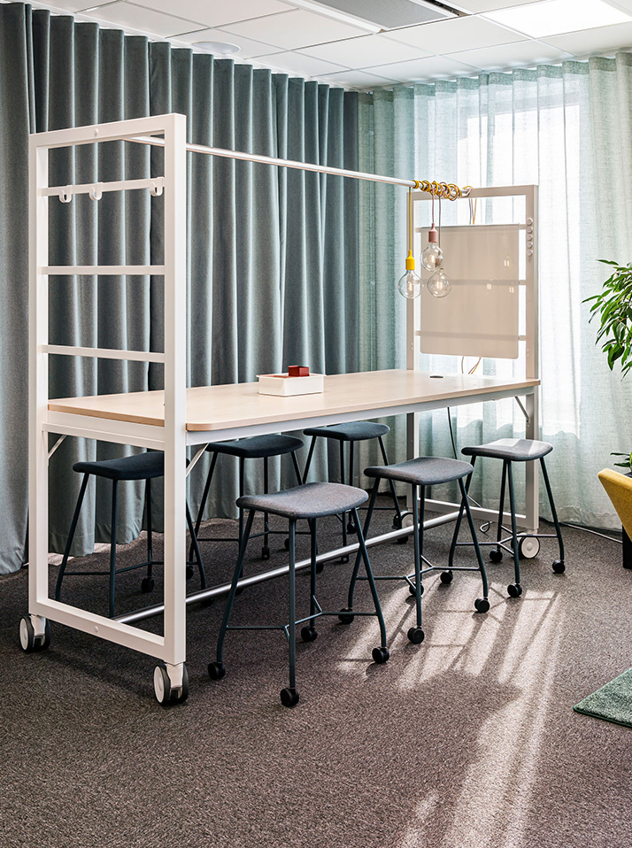 À travers des conférences, des ateliers et une enquête en ligne, Kinnarps a identifié les besoins du personnel de Kontract ainsi que les méthodes de travail de l’organisation. L'analyse du contexte actuel reposait sur les facteurs de productivité et de créativité, de collaboration, de santé et de bien-être, d'acoustique, d'éclairage et de qualité de l'air. En outre, ils ont reçu un soutien pour le processus de changement et la planification des espaces du bureau.