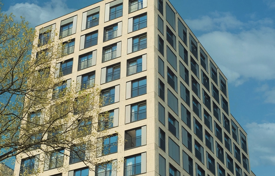 Nous voulions créer un complexe multifonctionnel comprenant à la fois des logements pour étudiants et des espaces commerciaux, et qui soit également un élément remarquable dans le quartier rénové d’Overvecht. Le design répond au désir de mettre l’accent sur le Healthy Urban Living (“vivre sainement dans un environnement urbain”) lors de la rénovation du quartier.