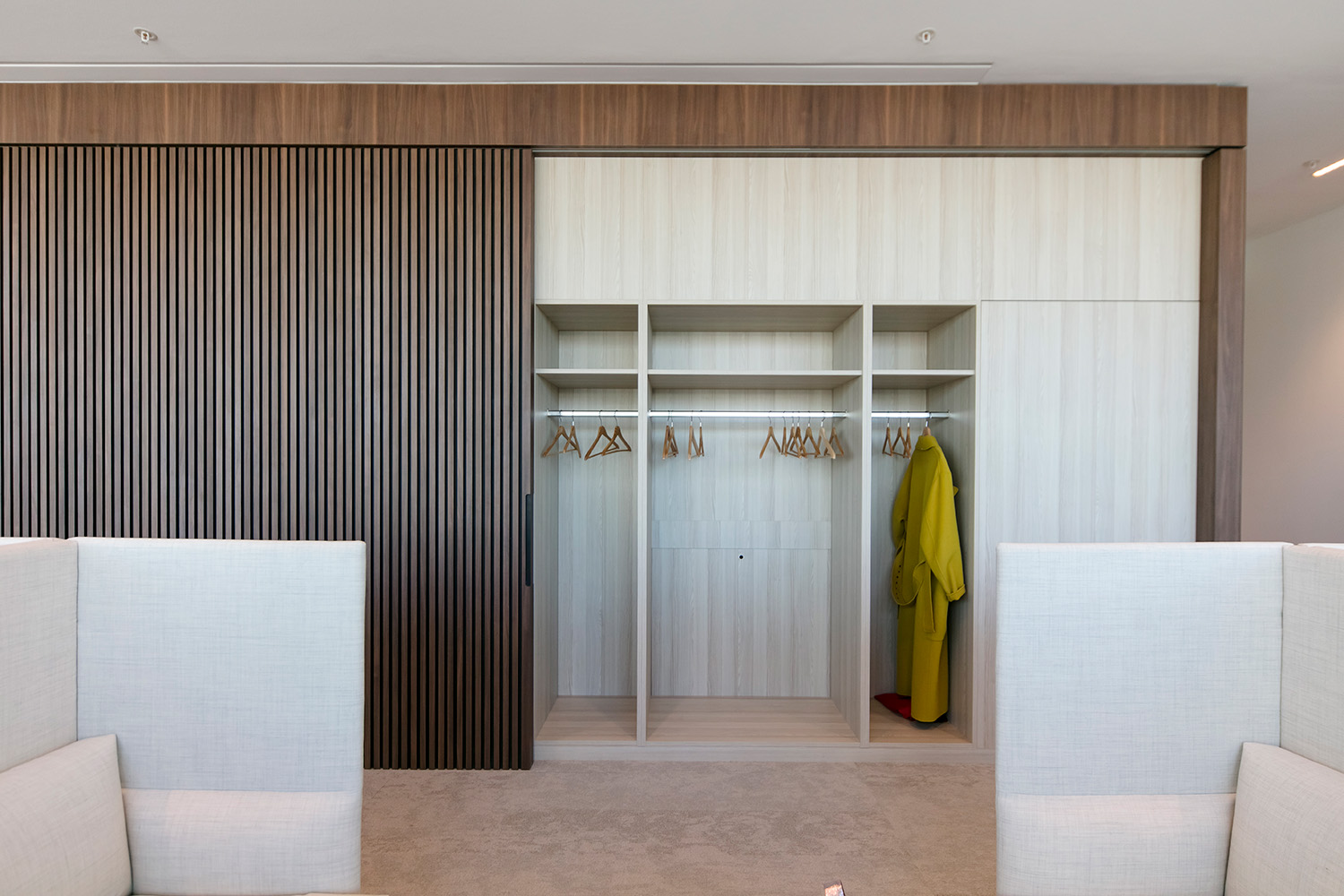Cette logique écologique se traduit également sur le plan technique. Les façades ont été entièrement renouvelées avec un triple vitrage et une isolation renforcée, tandis qu’un traitement photocatalytique appliqué en surface contribue à la purification de l’air le long de l’un des axes de circulation les plus fréquentés de Bruxelles. L’ensemble des installations techniques a été rationalisé et intégré dans des planchers surélevés, avec une distinction claire entre éléments fixes et composants flexibles.
