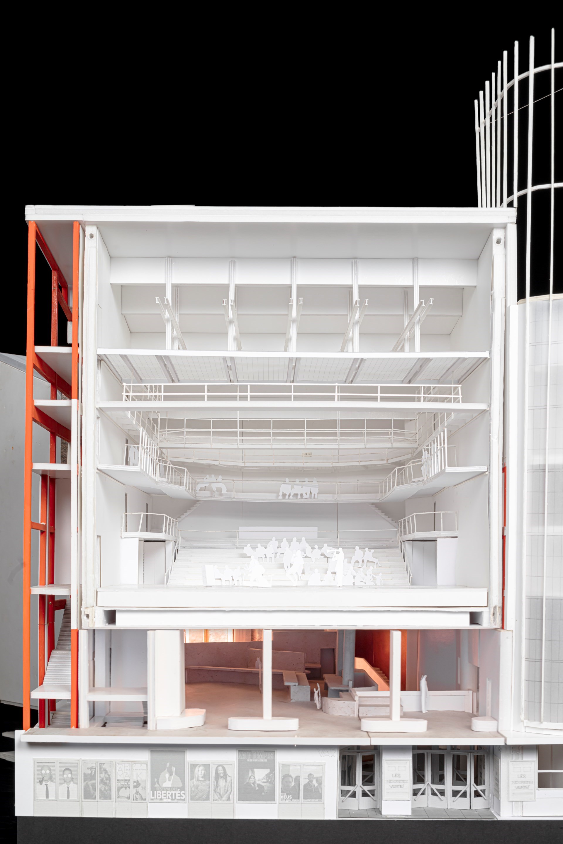 Outre une grande salle de spectacle (999 places), une petite salle de spectacle (405 places), des bureaux et des locaux techniques pour les équipes, l'équipe de conception envisage également un grand forum public et un bar. Il s'agira d'un haut lieu culturel où l'art, la culture et la vie de quartier se côtoient. De plus, l'héritage moderniste de ce bâtiment phare longtemps négligé fera pleinement partie du présent.