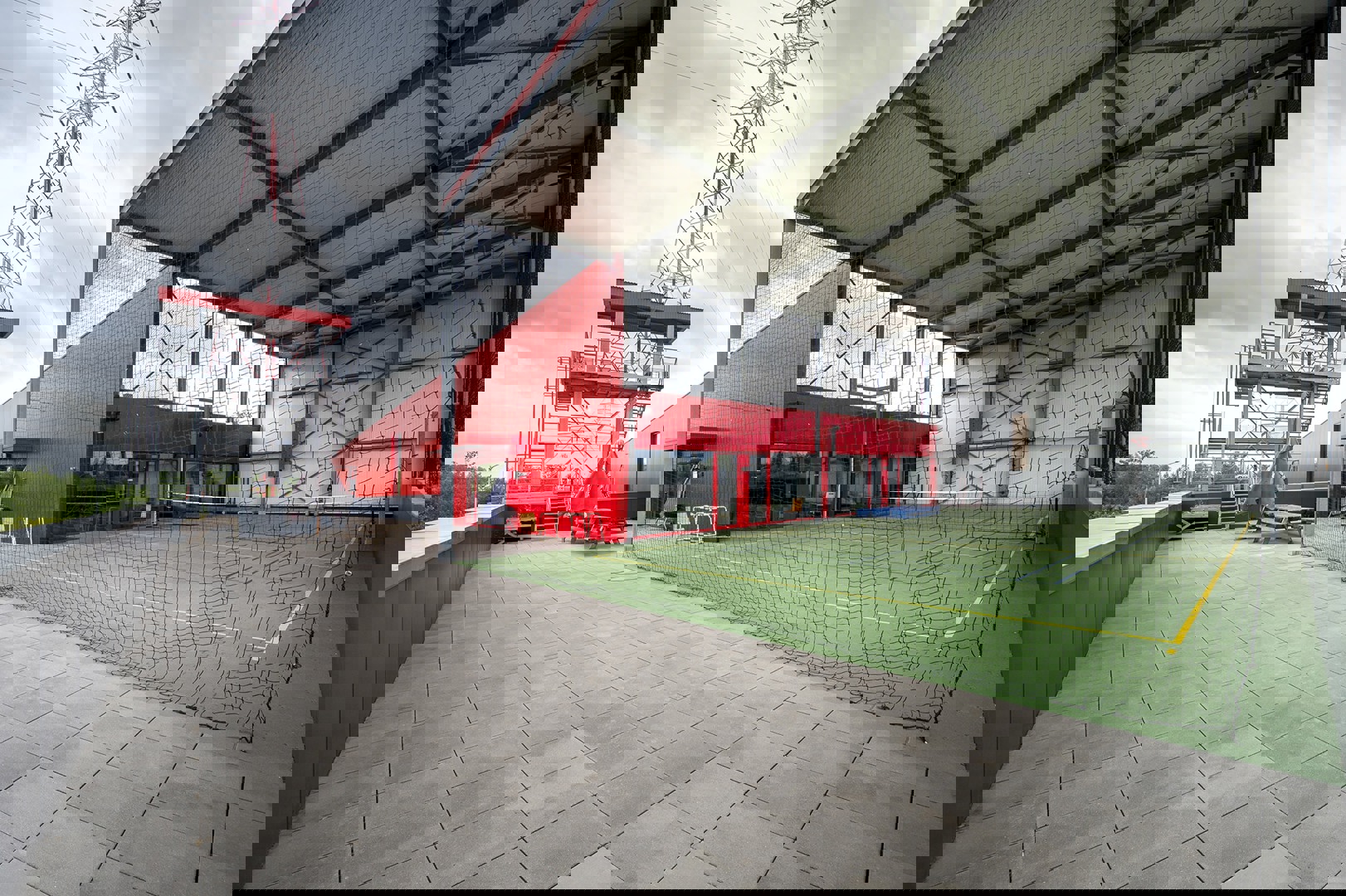 La caserne de Melle possède une terrasse unique : une partie du toit est aménagée en espace sportif. Pour les pompiers, rester en forme est essentiel. Cette toiture sportive est donc une solution ingénieuse. Le toit ne sert pas uniquement de couverture, mais devient aussi un lieu d’exercice et d’entraînement. Chaque mètre carré est ainsi utilisé de manière optimale. Pour garantir la sécurité et la fonctionnalité de cet espace, une rénovation était nécessaire.