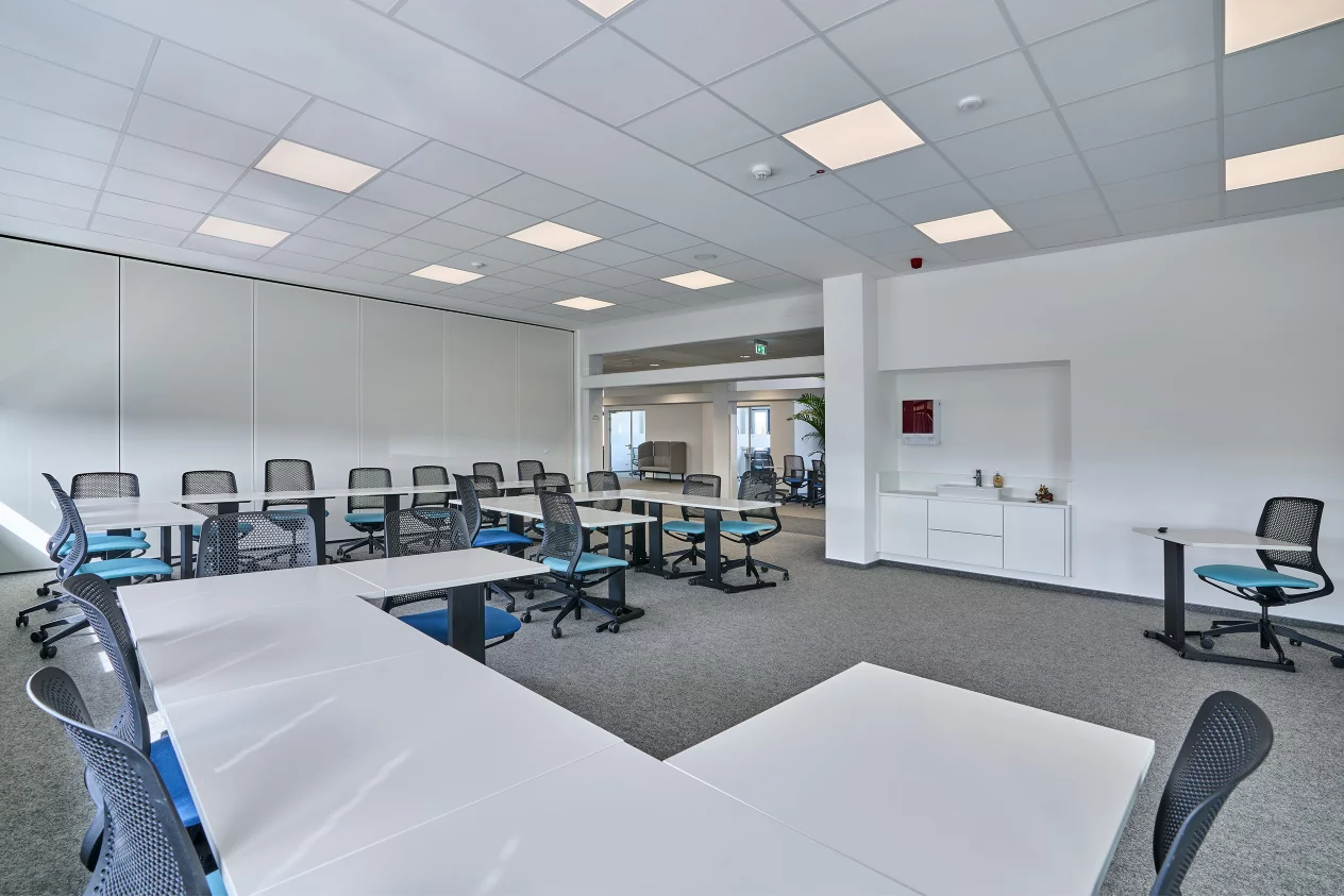 Le véritable point fort de TOPIQ® Alpha est son absorption acoustique. Les panneaux de plafond ont été testés selon la norme EN ISO 11654 et atteignent une valeur αw jusqu’à 1.00, équivalente à la classe A d’absorption acoustique. Dans les environnements fréquentés ou bruyants, cela se traduit par une amélioration notable de l’intelligibilité de la parole, du calme et du confort. Dans les salles de classe, les open spaces et les salles de réunion, c’est un facteur décisif.