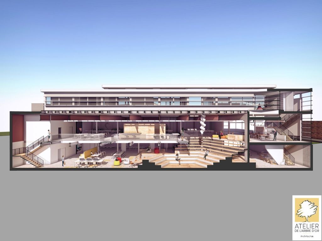 Pour le Bureau Economique de la Province de Namur, l'association momentanée de bureaux namurois et bruxellois Atelier de l'Arbre d'Or, LEVEL studio, RM architecte, BSolutions et nc&bham architecture s'est occupée de la conception, de la rénovation et de la transformation du nouveau siège du TRAKK. Ce tout nouveau hub créatif, destiné aux entreprises et aux particuliers, a ouvert officiellement ses portes à Namur il y a quelques semaines. Il s'installe à la place de l'ancien hall sportif de l'Université de Namur.
