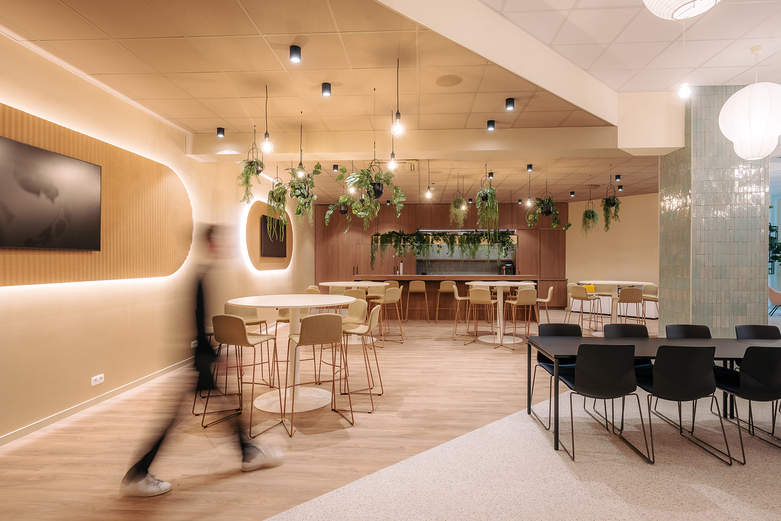 Initialement utilisé uniquement comme réfectoire, le rez-de-chaussée manquait d’attractivité et restait largement sous-utilisé en dehors des heures de midi. Belfius et le gestionnaire immobilier Philadelphus ont dès lors formulé une ambition claire :