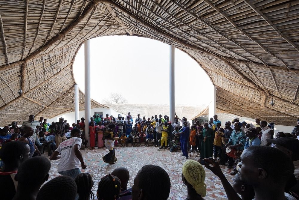 Achevé en mars 2015 et conçu par le bureau Toshiko Mori Architect (New York, États-Unis), le centre culturel Thread est situé dans une région à proximité de la frontière avec le Mali. Il représente un carrefour communautaire pour un réseau de villages isolés, il offre des espaces pour héberger des artistes et présenter des spectacles et il comprend une bibliothèque publique et un centre de formation agricole. Les concepteurs ont inversé la toiture faite de matériaux traditionnels pour qu’elle puisse servir à recueillir les eaux pluviales et les stocker en vue de leur utilisation ultérieure pendant la saison sèche qui dure huit mois. Le bâtiment est entièrement construit de matériaux locaux, comme le bambou et les blocs de pisé. Le centre a renforcé la cohésion sociale et offert une stabilité dans une communauté formée de divers groupes ethniques. En savoir plus sur ce projet.