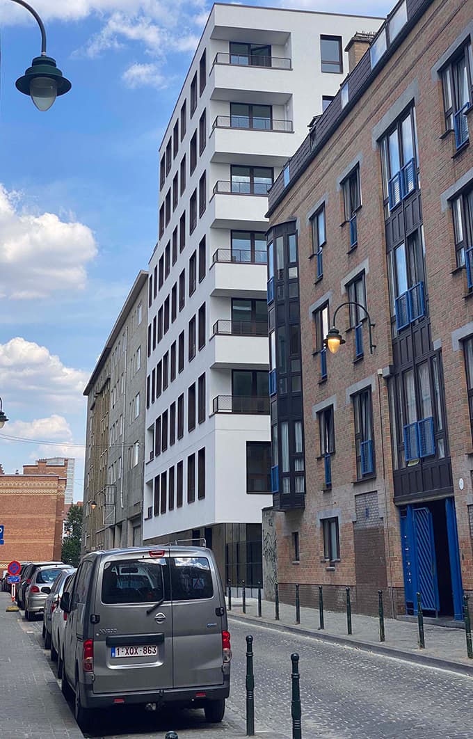 Le projet “Philanthropie” est un projet de logement social situé dans la Rue de la Philantropie, dans le quartier des Marolles à Bruxelles. Selon les architectes, la BGHM (Société régionale de logement de Bruxelles) a demandé la réalisation d’appartements abordables et de haute qualité au cœur de Bruxelles. Une construction préfabriquée en bois a été choisie comme modèle de construction, afin de réduire l’impact sur l’environnement. La surface brute était de 2059 m².