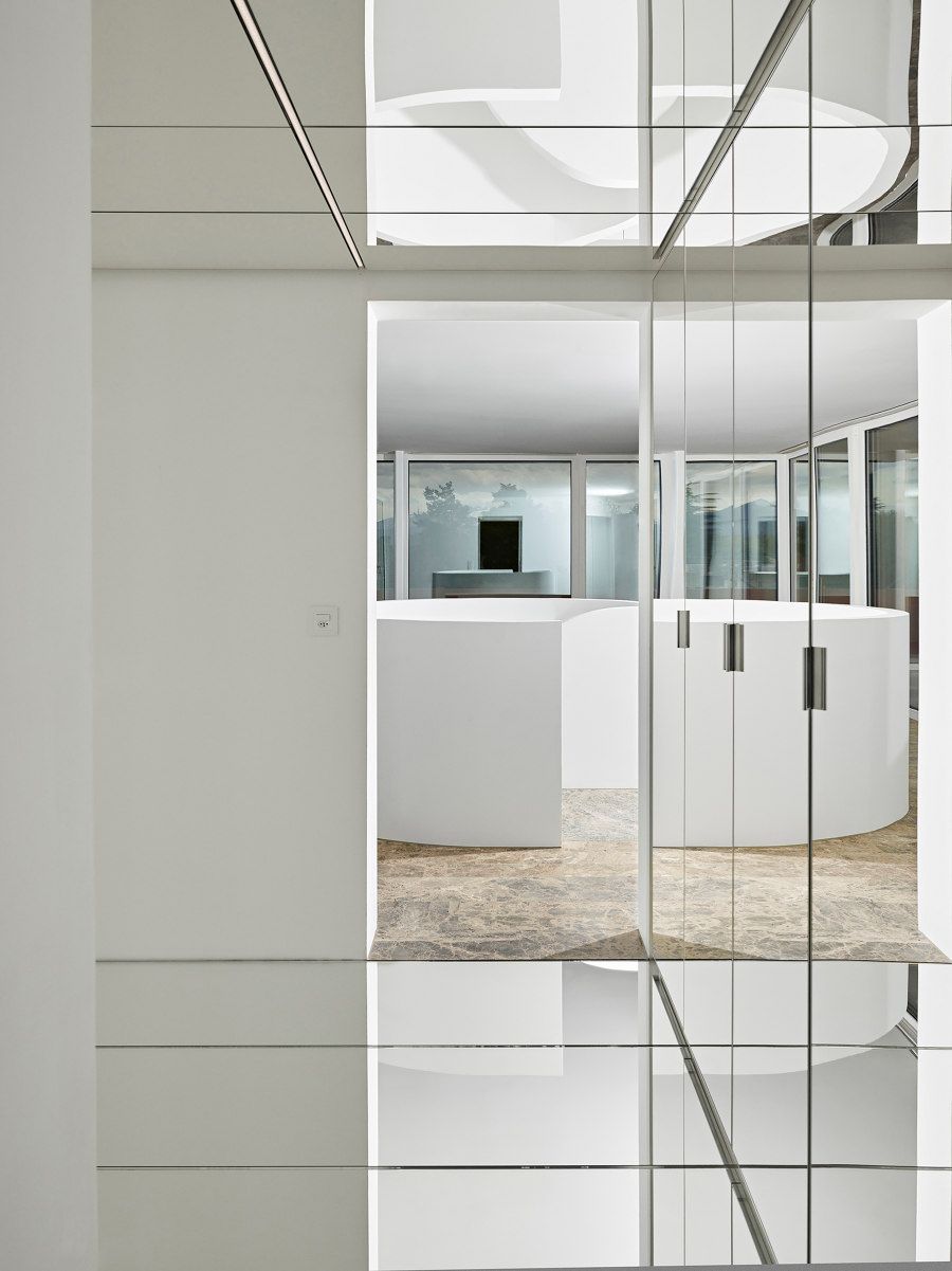 La conception de la résidence établit un dialogue avec son environnement, tout en jouant d’un fort et étonnant contraste afin de prendre place dans le quartier et la communauté. A la demande du maître d’ouvrage, le projet comprend une villa avec vue sur le Mont Blanc et une petite maison à louer. Comme dans le projet ‘Twin House’, achevé il y a 10 ans, G8A + collinfontaine intègrent plutôt que reproduisent les maisons, ce qui laisse entrevoir une seule entité aux séparations imperceptibles.