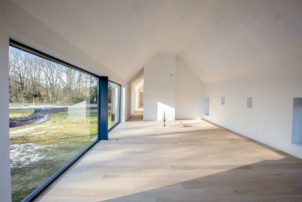 Le château étant implanté au sein d’un parc d’environ 5 ha, le projet de rénovation/transformation permettait de s’ouvrir sur la nature et d’avoir en toile de fond un verger, de grandes rangées d’arbres et des paysages à perte de vue. Le résultat propose une discrète mise en valeur des éléments remarquables du site ponctuée d’éléments contemporains, marquant ainsi une intervention fine et réfléchie en concertation avec les services de protection, avec à la clé des espaces de vie très lumineux aux valeurs écoresponsables.
