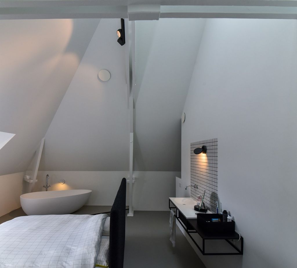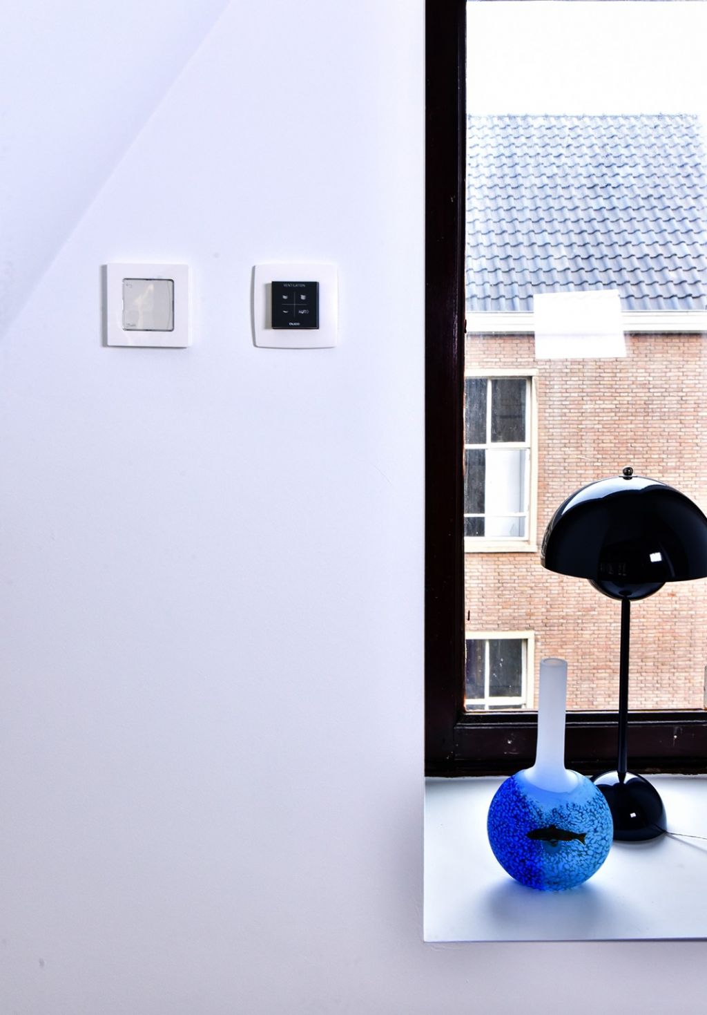 « De par ma profession d’architecte d’intérieur, l’aspect esthétique était peut-être le point le plus important pour moi », admet Carlos van Dijk. « Par exemple, nous avons recherché des bouches de pulsion et d’extraction pouvant s’adapter de façon quasi invisible dans la pièce dans laquelle elles devaient être installées et nous avons découvert que les bouches DucoVent Design étaient exactement ce qu'il nous fallait », ajoute Thea Witteveen. « Ces bouches sont d’un design subtil et conviennent pour un montage au plafond et au mur. Comme notre appartement se situe sous l’arête du toit, c’était la solution idéale. »