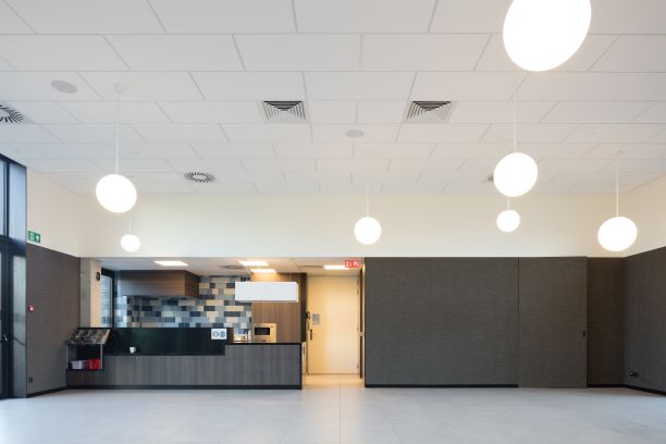 Le bureau AVDK (Architects Vande Kerckhove) a été chargé de la conception du projet. Frederik Tomme, architecte partenaire au sein de ce bureau, connaît bien les panneaux décoratifs absorbants de Print Acoustics By Triplaco. Pour plusieurs autres projets, et notamment d'autres bâtiments scolaires en Flandre (Zwevezele, Blankenberge, Torhout, Kortrijk...) il a déjà prescrit les produits absorbants, résistants aux rayures et facilement nettoyables de Print Acoustics.