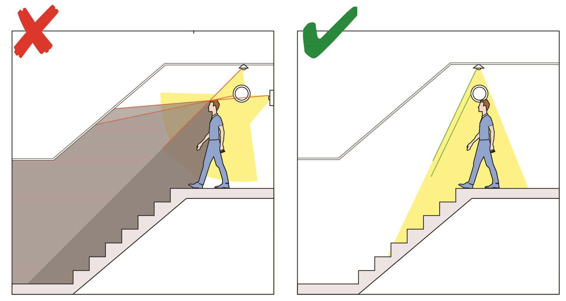 Ainsi, en plus d’éclairer l’escalier même, il importe d’éclairer correctement le haut et le bas des marches et, éventuellement, les paliers intermédiaires.
