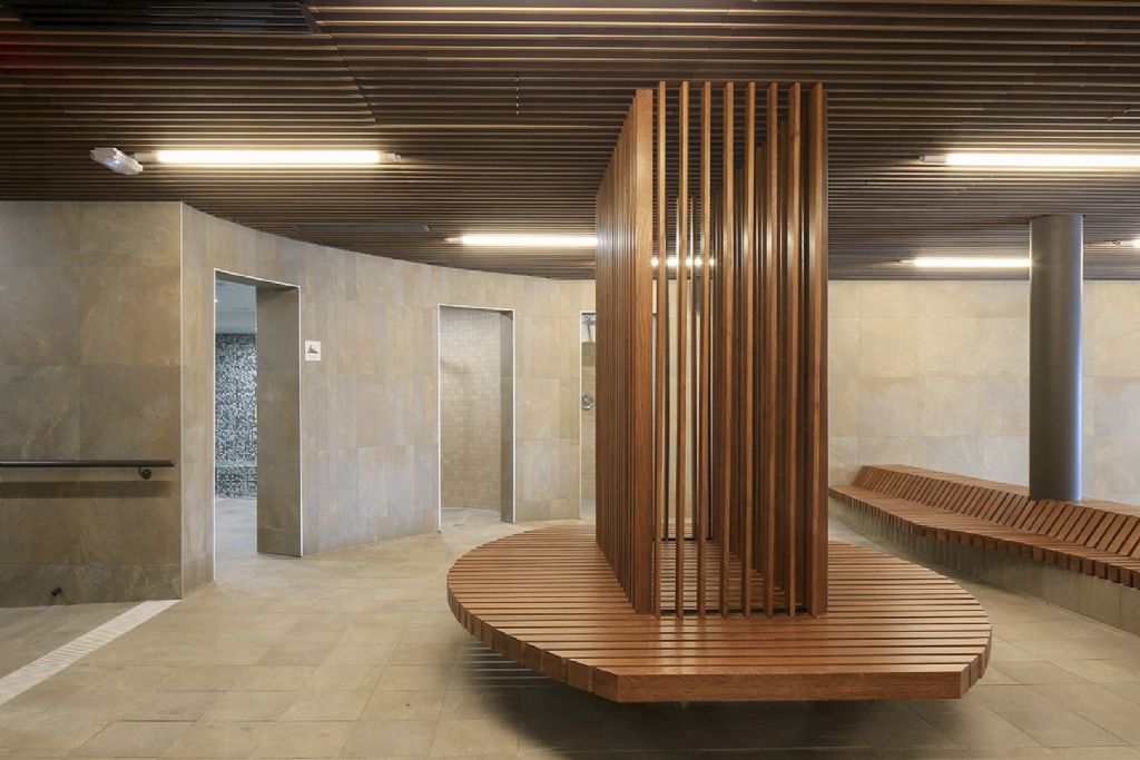 Le rez-de-jardin est le royaume de l’aquatique, avec deux bassins qui peuvent être indifféremment séparés ou réunis, et le bassin nordique, situé à l’extérieur. Des vestiaires groupes et individuels, avec douches, sont dédiés à chacune des halles, permettant d’éviter les croisements de différents publics.