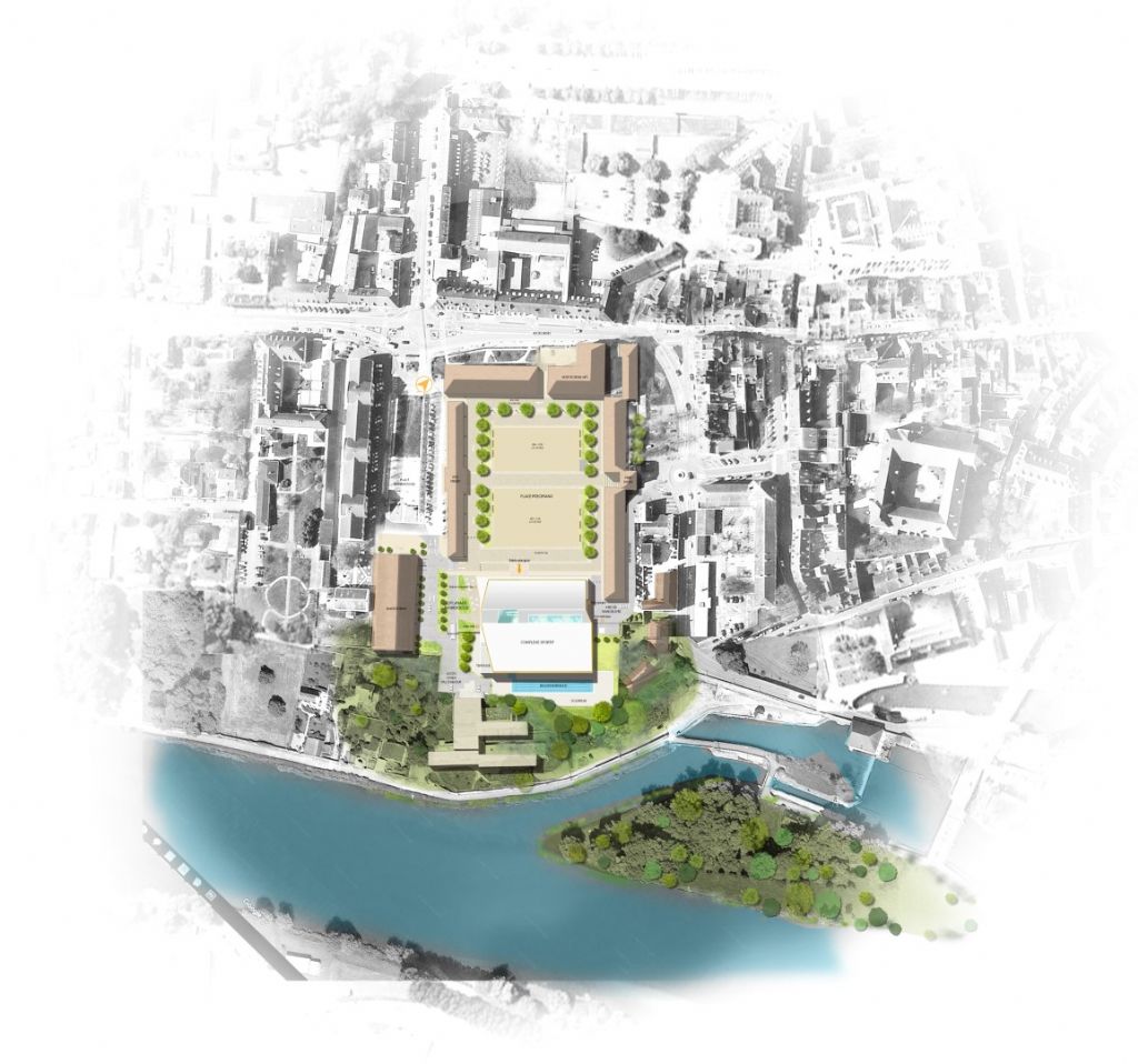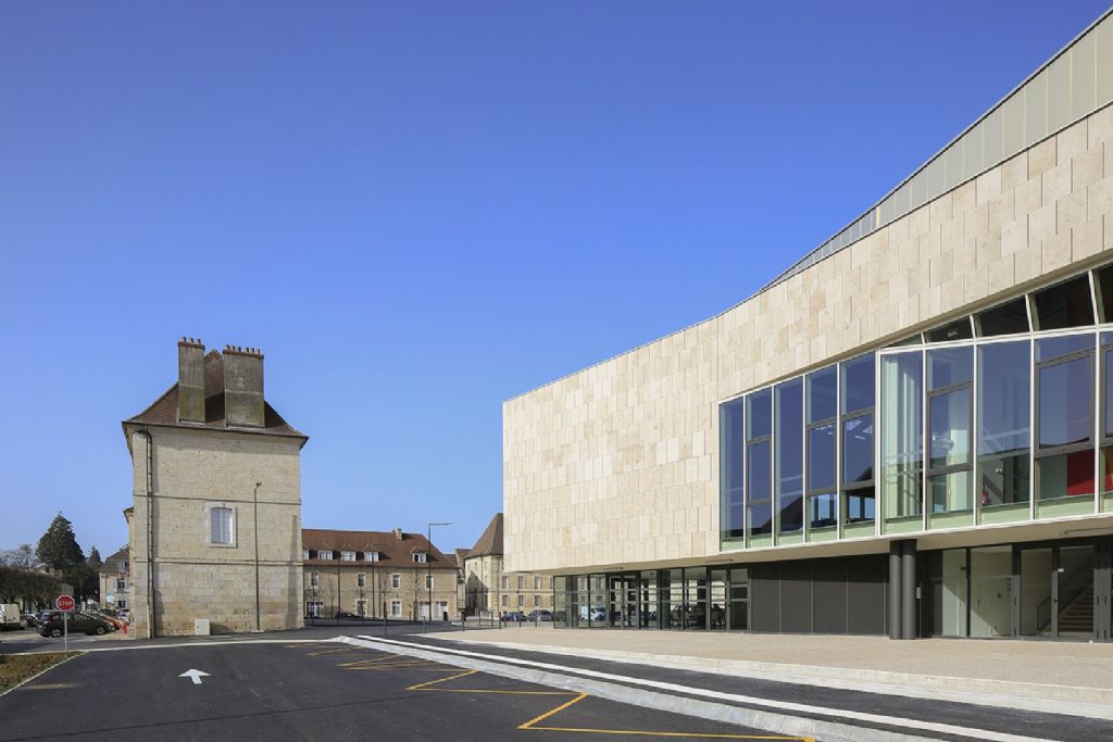 La composition urbaine de la Place Précipiano lui donne une vraie richesse due à l’assemblage d’une forme parfaitement régulière (caractéristique des Places d’Armes) contrebalancée par l’intéressante diversité architecturale de ses bâtiments de profils et d’époques variés. Le projet de TNA s’inscrit dans cette diversité, en proposant une quatrième façade forte, unitaire, contemporaine par son dessin, et respectueuse du patrimoine par sa matérialité puisqu’elle est habillée d’une pierre de Bourgogne en dalles épaisses.