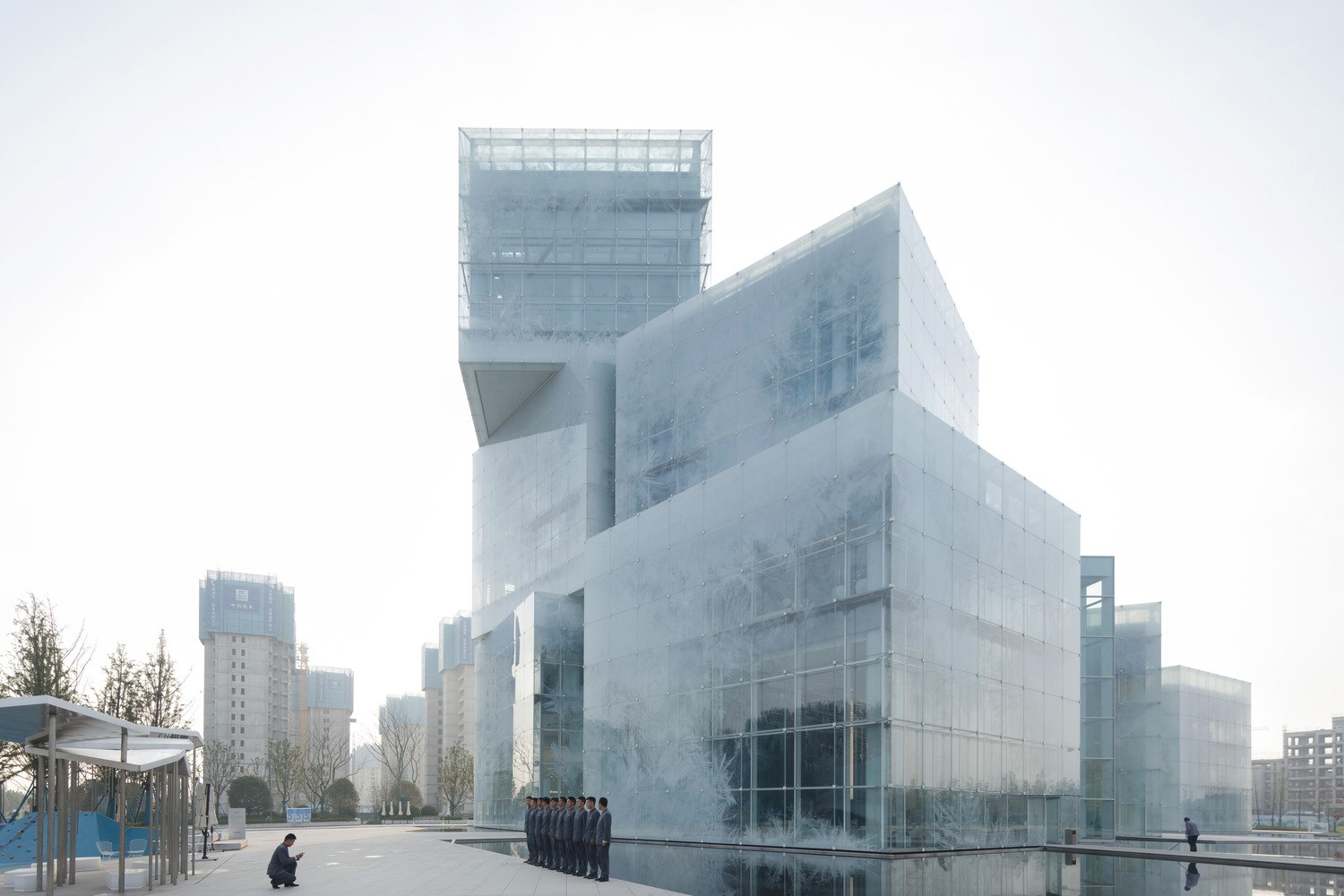 Neuf glaçons sont superposés et décalés les uns par rapport aux autres, représentant le thème général du quartier des loisirs. Cette apparence simple devient subtile et complexe à mesure que l'on s'approche - La texture des façades en verre est composée d'une multitude de cristaux de glace translucides enchevêtrés qui filtrent la lumière et la vision de l'intérieur. Il s'agit de cacher, tout en montrant, pour provoquer le mystère et l'envie d'approcher. Les cristaux de glace captent la lumière et la restituent. Le bâtiment semble ainsi émettre la lumière qu'il reçoit comme une masse de glace habitée.