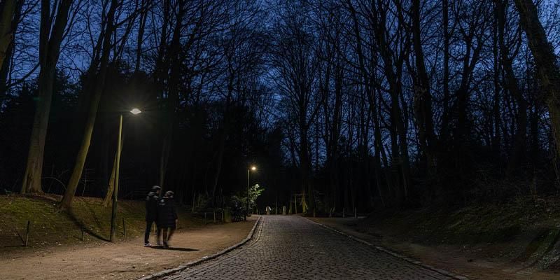 Actuellement, à Bruxelles, la programmation de l’éclairage public est définie sur la base d’un calendrier. Celui-ci tient compte de différents paramètres tels que la saison ou encore le type d’espace où chaque luminaire est situé. Sur cette base, le système prévoit une diminution de l’intensité lumineuse à certaines heures de la nuit. Pendant 3 mois, Sibelga en collaboration avec Schréder, a réalisé un test d’éclairage intelligent inédit sur une partie des luminaires du Bois de la Cambre.
