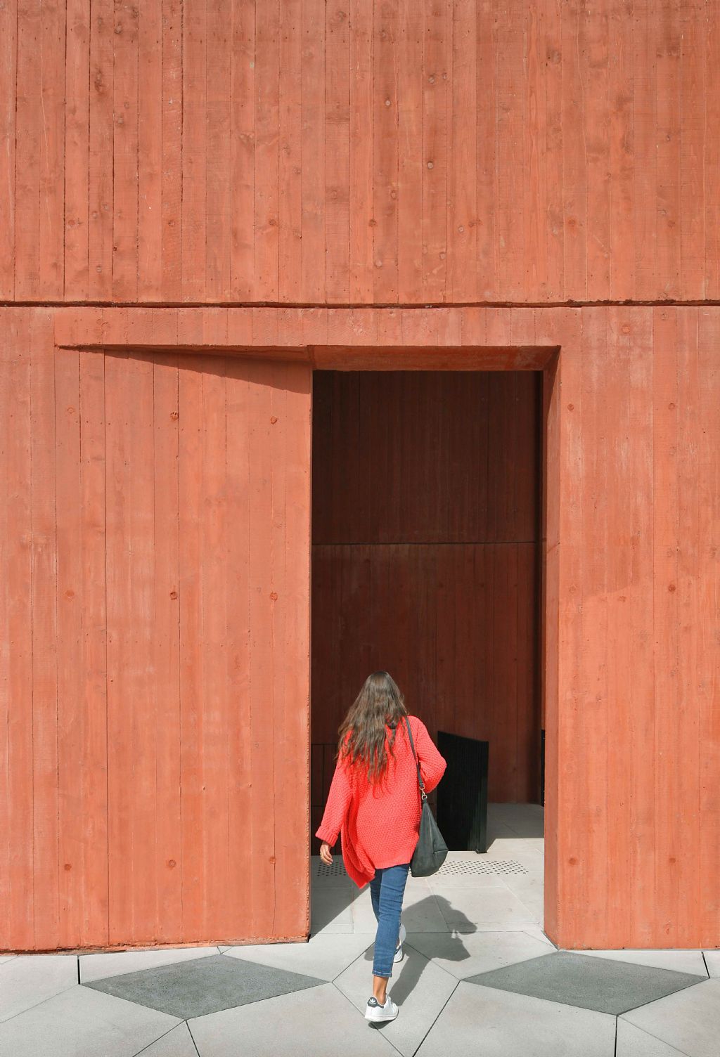 Pour répondre aux enjeux urbains et architecturaux du lieu, le projet du bâtiment de la gare a été conçu avec une expression brute et sobre. Le béton est le matériau principal incarnant cette expression. De manière à soutenir la verticalité créée par la tour de la gare, l’idée de travailler avec une surface de béton texturée à motif vertical s’est manifestée très tôt.