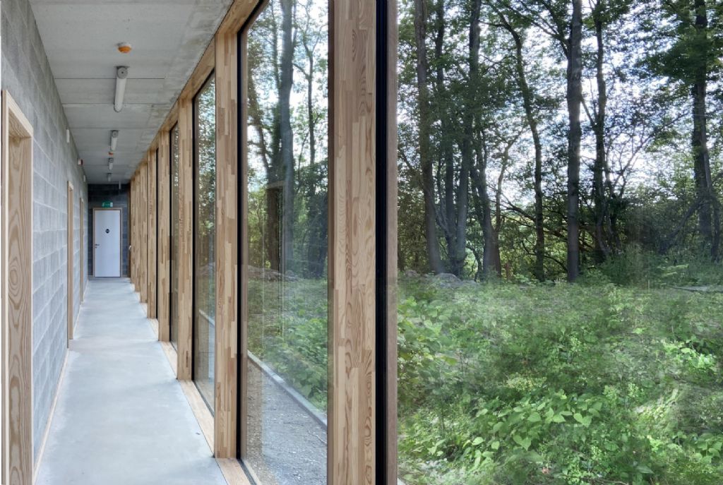 Quant aux aspects durables et écologiques, ils se trouvent au niveau de la construction - châssis bois PEFC, isolation écologique, gestion de la surchauffe par des moyens architecturaux, limitation de la consommation par sondes CO2, détecteurs de présence et sondes crépusculaires ... - mais également dans le projet global de restructuration et dans les traitement des abords : diagnostic soigneux des éléments paysagers en place, renforcement des écosystèmes existants grâce aux haies mélangées et à la plantation d'arbres indigènes, réduction des surfaces imperméables, noues d'infiltration et bassin de rétention des eaux pluviales, mais également formation des utilisateurs pour un usage optimal des équipements mis en place et sensibilisation aux économies d'énergie.
