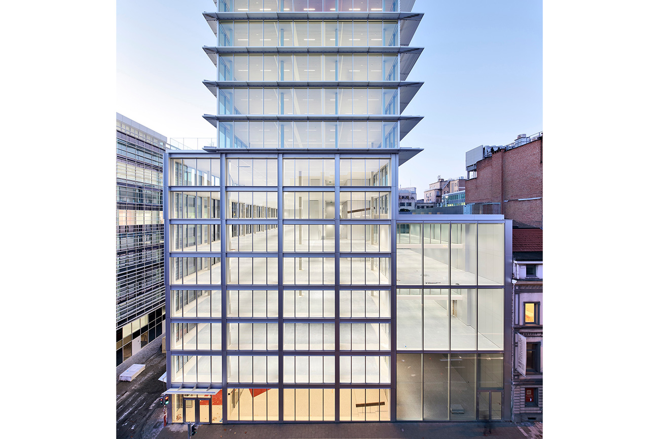 À l’angle de la rue Belliard et de la rue du Commerce à Bruxelles – à la limite du quartier Léopold et à un jet de pierre du Palais Royal et du parc Warande qui se trouve derrière – se dresse le nouvel immeuble de bureaux « Commerce 46 ». Généreusement vitré, il compte treize étages et une surface utile de 14 200 m². Grâce à sa neutralité en CO2, ce complexe remarquable peut en outre se prévaloir d’un certificat BREEAM Outstanding. Ce nouvel immeuble a été dessiné par Jaspers-Eyers Architects.