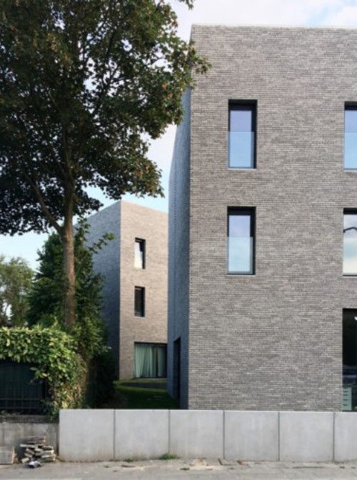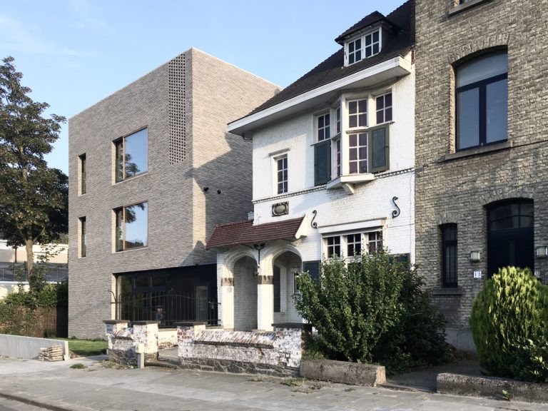 Ainsi, à chaque retrait, la brique laisse place à une peau en enduit noir. Enfin, de la brique ajourée offre des effets de lumière et de perspectives tout en maintenant l’intimité qui pourrait être mise en péril par les différents vis-à-vis.