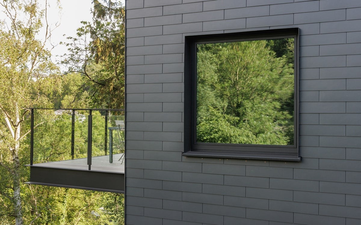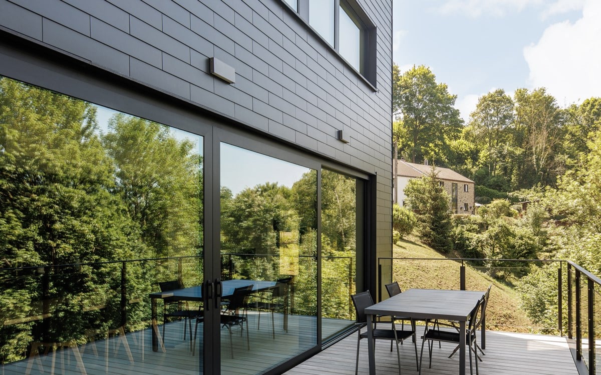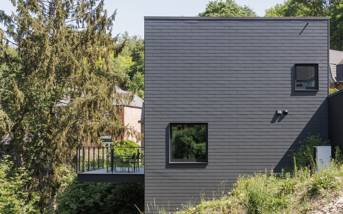 Dans cet esprit, Cedral a grandement aidé Quentin Falque dans la conception de son habitation. « Comme le terrain est en pente, le raccord entre celui-ci et le matériau n’est jamais évident. La découpe en biais au niveau des ardoises Cedral a été salvatrice pour nous. Cela a rendu l’étanchéité plus facile à réaliser, surtout par rapport à une enveloppe en brique. »