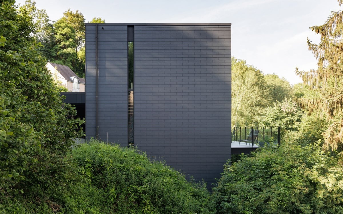 La particularité d’un terrain à bâtir offre parfois des constructions hors du commun. Quentin Falque, architecte, s’est servi des spécificités de son terrain pour imaginer une maison intégrée à la nature environnante. Les ardoises Cedral forment une enveloppe permettant à cette création d’être un véritable caméléon parmi les arbres.