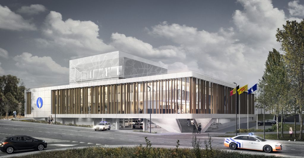 On en parlait depuis quelques années déjà, c'est à présent décidé : la Zone de police du Tournaisis va quitter ses bureaux du centre-ville pour s'installer en bordure du zoning commercial des Bastions, sur l'ancien site d'ORES. Après un ultime recours, le marché a été attribué à l'association momentanée BAEB - BAG - VK Engineers. Les concepteurs ont imaginé un tout nouveau bâtiment dont nous vous présentons les premières images de synthèse. Celles-ci pourraient encore cependant légèrement évoluer (matérialité) en fonction des discussions en cours avec les services de police pour affiner le projet selon leurs attentes.
