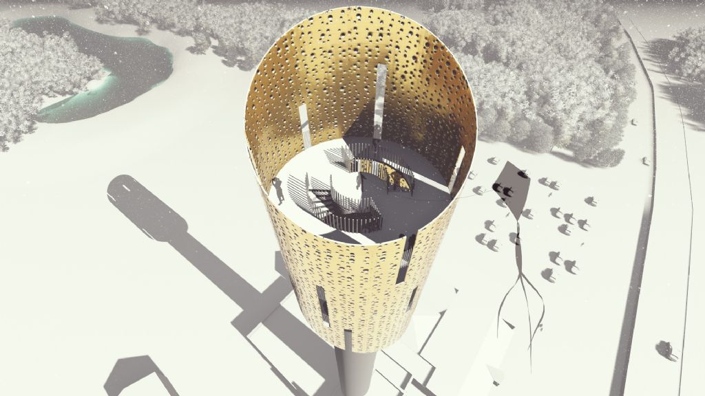 Nous avons donc réfléchi à une manière de réaffecter la tour en évitant ces contraintes. Actuellement, dans le fût central en béton se trouve une cage d'ascenseur et un escalier s'enroulant autour. Nous allons garder l'ascenseur et doubler l'escalier en construisant deux escaliers hélicoïdaux superposés en béton, et répondre ainsi à l'obligation d'avoir deux évacuations de secours pour pouvoir accueillir du public en hauteur. »