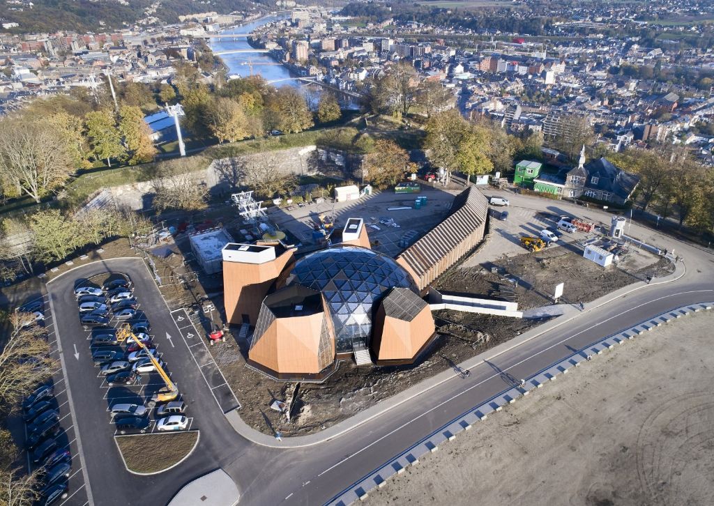 On décide donc de remonter le pavillon sur l’esplanade de la Citadelle, ce qui ne va pas sans mal puisque l’on excave tout d’abord des terres polluées et que l’on découvre des vestiges archéologiques sous la forme d’anciennes murailles. Il était également impossible d’ouvrir simultanément sur le site tous les containers avec les éléments du pavillon de Milan. Philippe Debar : « A chaque étape de la construction, nous avons dû aviser, décider des éléments que nous gardions ou non et des adaptations et reconditionnements à réaliser. » Un exemple parmi d’autres : le plancher-dalle en OSB 30 mm sur structure métallique du rez-de-chaussée a dû être remplacé par un sol en béton, pour pouvoir supporter les engins lourds nécessaires à l’entretien ainsi que, par la suite, l’installation d’œuvres d’art.
