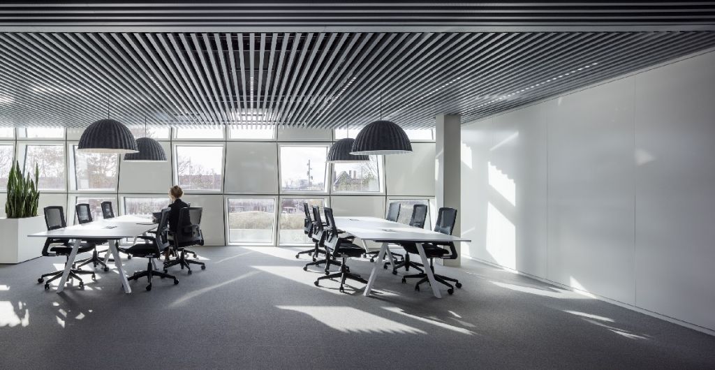Le caractère durable de l'aluminium était également un important critère de choix. Les immeubles de la CPI sont éclairés d'une centaine de milliers d'armatures LED totalement intégrées dans les lamelles perforées, ce qui contribue à l'apparence nette et dépouillée du plafond.