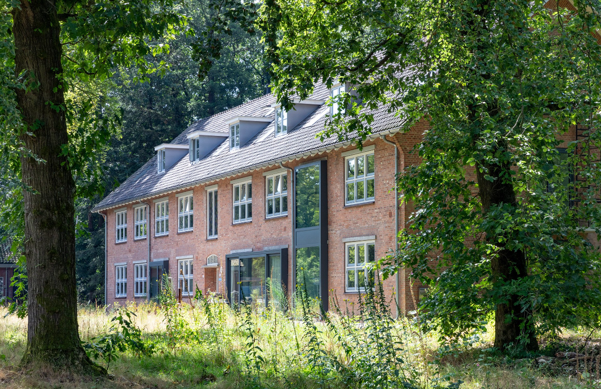 Dans le cadre de cette transformation, les studios d’architecture locaux Kraft Architecten et Hoogte 2 Architecten ont également participé à la reconfiguration de bâtiments d'après-guerre présents sur le site. Ces derniers ont été réadaptés avec de nouveaux encadrements de portes et des fenêtres de toit au fini gris foncé, permettant ainsi de marquer visuellement la différence entre les éléments anciens et nouveaux.