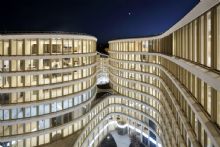 L’un de ces nombreux développements innovants qui ont permis au projet de passer à la vitesse supérieure est le STES, ou Seasonal Thermal Energy Storage. « Il s’agit d’un système de stockage saisonnier de l’énergie thermique sous la forme d’un immense bassin d’eau, situé aux niveaux -4 et -5 du bâtiment », explique Maarten Vande Sompele. « Ce n’était pas un choix évident à faire, mais comme les certifications PHPP et BREEAM Excellent s’accompagnaient d’exigences strictes en matière d’efficacité énergétique et que diverses simulations avaient montré que nous pouvions répondre aux exigences proposées avec cette solution, nous avons décidé de nous lancer. La chaleur et le froid sont extraits de l’eau stockée, après quoi les pompes à chaleur eau-eau chauffent le bâtiment à basse température ou le refroidissent à haute température via des plafonds climatiques. Les régulateurs avec échangeurs rotatifs, qui récupèrent à la fois la chaleur et l’humidité, contribuent également à la climatisation. Puisque le bâtiment est très grand et l’espace disponible dans les faux-plafonds minimal et que les architectes ont fait un usage intensif de formes courbes, c’était un vrai casse-tête de mettre en place tous les composants HVAC et les grands régulateurs. Notons également qu’environ cinq cents panneaux photovoltaïques installés en toiture fournissent l’énergie verte nécessaire. »
