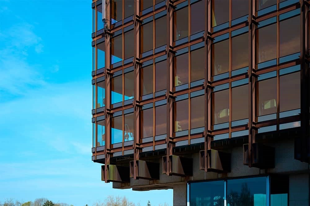 Avec ses fenêtres orange et son socle en acier Corten, l’immeuble de bureaux construit à la fin des années 1960 pour la compagnie d’assurance Royale Belge est un édifice emblématique de Bruxelles. Conçu par René Stapels et situé à la lisière de la forêt de Soignes et de l’étang de Tenreuken, le bâtiment était toutefois inoccupé depuis plusieurs années, subissant les outrages du temps. Les promoteurs qui ont acheté le bâtiment ont donc décidé de le rénover avant de le réaffecter à un usage multifonctionnel pour en faire le Mix Brussels. C’est CIT Blaton qui s’est chargé de cette rénovation générale. « Le projet était loin d’être banal et comportait de nombreux défis », explique Daan Watté, senior project manager chez CIT Blaton. Ce projet a été porté par Caruso St John’s Architects, Bovenbouw Architectuur, DDS+ et Atelier Eole Paysagistes (architecture paysagère).