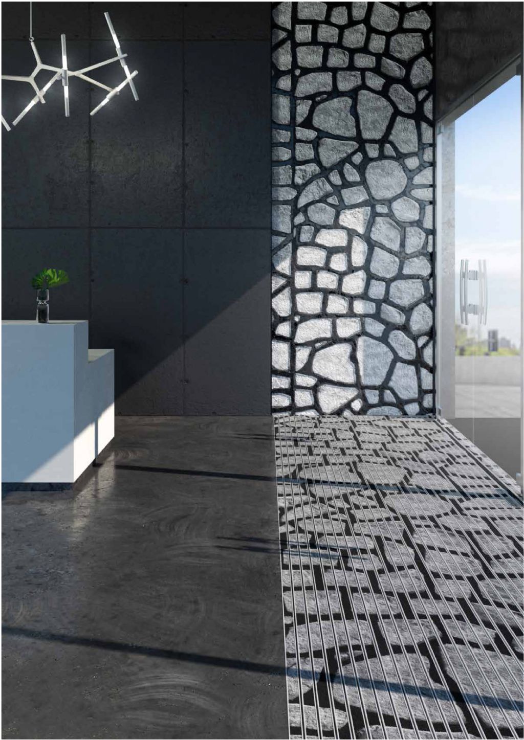 Le revêtement de propreté peut être découpé sur mesure pour être placé dans une embrasure ou posé sur le sol en guise de paillasson (avec finition au niveau des bords). La largeur des rouleaux varie de 100 à 200 cm. Le tapis de propreté peut, en outre, faire office de 3e zone dans le cadre du système de nettoyage efficace à 3 zones. Les multiples possibilités et l’esthétique de haut niveau permettent d’apporter la touche finale à toute entrée.