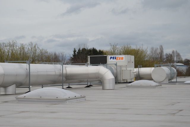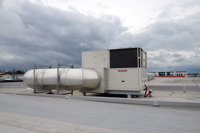 La pompe à chaleur Reznor RTU 3080 s’est révélée la solution idéale. La distribution de l’air est réalisée via des grilles dans le faux-plafond de la salle d’exposition. “La Reznor RTU est une solution durable et efficiente, de plus elle est facile à installer sur le toit, selon le principe Plug and Play”, selon Marc Gailly, délégué technico-commercial pour la Wallonie, chez Molimex-therm, distributeur de systèmes HVAC. L’installation est complétée par une batterie au gaz de 60 kW. “L’option du brûleur au gaz a été choisie pour garantir un chauffage suffisant par grand froid. Dès que la température extérieure descend sous les 5 degrés, le brûleur au gaz est enclenché en appui de la pompe à chaleur”, explique Marc Gailly. Avec une capacité de chauffage de 26000 m3/h, le système est largement suffisant pour assurer une température confortable dans la salle d’exposition, dans toutes les circonstances.