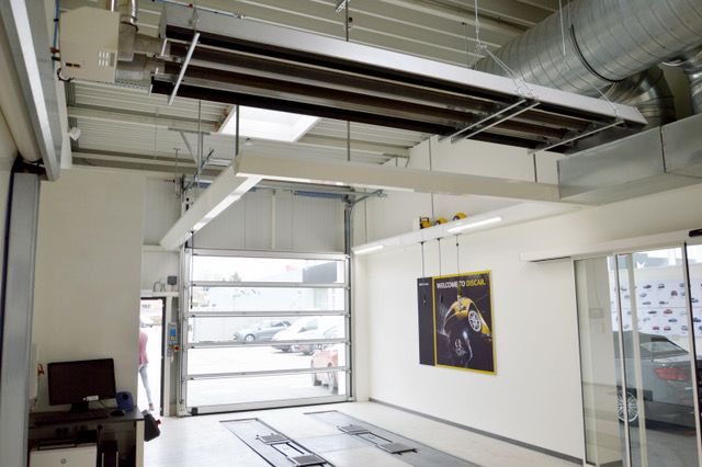La réception directe est chauffée par un tube radiant au gaz BTH2R de Gaz Industrie. Les tubes radiants produisent un rayonnement infrarouge qui chauffe uniquement à l’endroit où il est dirigé. La réception directe étant un espace délimité par des grandes portes donnant sur l’extérieur et fréquemment ouvertes, la solution la plus rationnelle était d’opter pour un système de chauffage de surface, plutôt qu’un système de chauffage ambiant. Le tube radiant BTH2R de Gaz Industrie est un tube radiant performant, mais également très fiable.