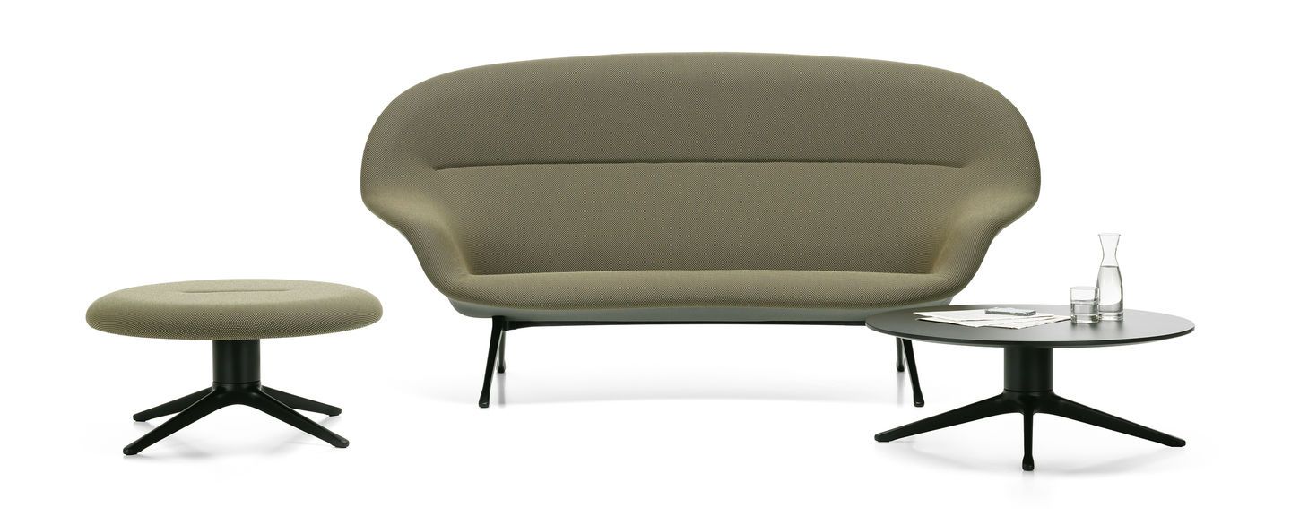 Le canapé Abalon peut être complété par la plate-forme Abalon et la table Abalon. Abalon Platform est un tabouret rond qui peut être utilisé comme siège flexible et comme repose-pieds. Les pieds soigneusement proportionnés et largement évasés de la base assurent non seulement un haut degré de stabilité, mais montrent aussi clairement que le tabouret fait partie de la famille Abalon. L'Abalon Table est une table basse ronde dont le plateau est disponible en différentes finitions.