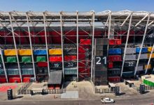 Un stade transportable, conçu avec 974 conteneurs maritimes recyclés