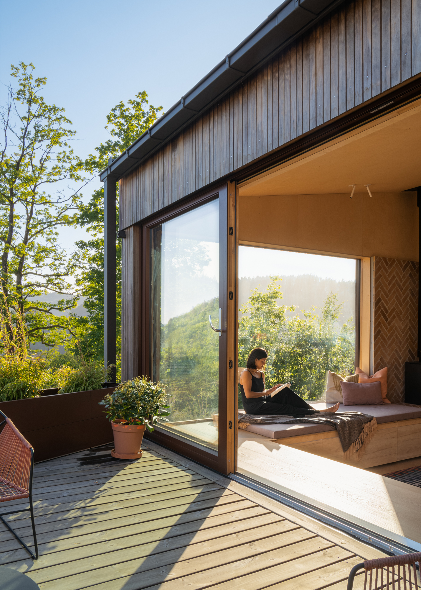 Daniele Sales Myrhaug, co-fondatrice de l’agence d’architecture et de design locale Alma Eik, a appliqué la philosophie holistique de son studio et ses principes de design harmonieux à la création de son propre chalet. Daniele a quitté le Brésil pour la Norvège il y a seize ans. La recherche de la tranquillité via une relation étroite avec la forêt était au cœur de l’inspiration du projet.