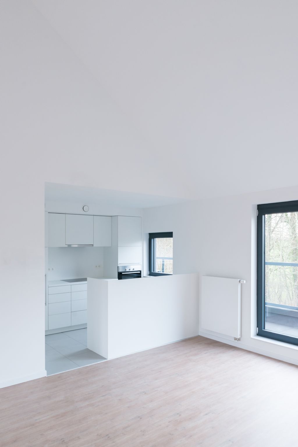 La préoccupation première des architectes concerne la mise en accord avec le cadre bâti et non bâti. Particulièrement attentifs à l’intégration du projet dans le tissu urbain et social, l’approche urbanistique et la gestion des abords sont prises en compte pour permettre à la bibliothèque d’avoir son indépendance de fonctionnement avec un accès aisé depuis l’espace public et proposer un cadre de vie plus que des logements, le tout dans un budget tenu. Dans cette optique, la gestion des sols est primordiale tant du point de vue des superficies de terrain disponibles que dans la qualité d’aménagement de celles-ci en regard du site, des constructions voisines et de leurs rapports mutuels. Le travail sur la volumétrie, le rapport avec la voirie, la prise en compte de l’arbre remarquable,… sont autant d’éléments soutenant l’intégration urbanistique qualitative du projet proposé dans son contexte bâti et non bâti.